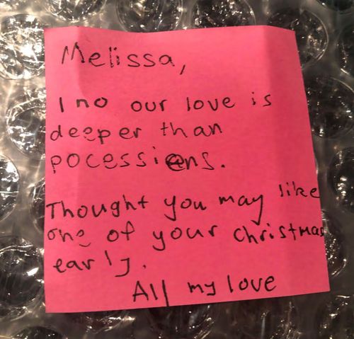 A note Anthony Koletti left Melissa Caddick the day after their Dover Heights home was raided. (Supplied)